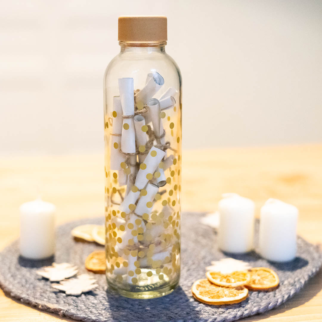 Alle Jahre wieder: Der Dezember rückt immer näher und die Vorfreude auf eine schöne und besinnliche Weihnachtszeit steigt. Da darf der Adventskalender nicht fehlen. Wenn du Freund:innen, deiner Familie oder deinem Partner, deiner Partnerin die Vorweihnachtszeit mit kleinen Botschaften am Morgen versüßen möchtest, bist du hier richtig! Warum immer den selben Schokoladen-Adventskalender im Supermarkt kaufen, wenn wir für unsere Liebsten einen basteln können? Und das ganze ohne den Plastikmüll. Dieses Jahr wollen wir kreativ werden mit einem Achtsamkeits-Adventskalender zum selber gestalten. Der DIY-Kalender ist eine liebe Geste und mit deiner persönlichen Handschrift gestaltet. Und das beste: Für dein Adventskalender-Projekt musst du kein Bastelprofi sein und mit deiner CARRY Bottle hast du die perfekte Möglichkeit deine Botschaften zu transportieren.