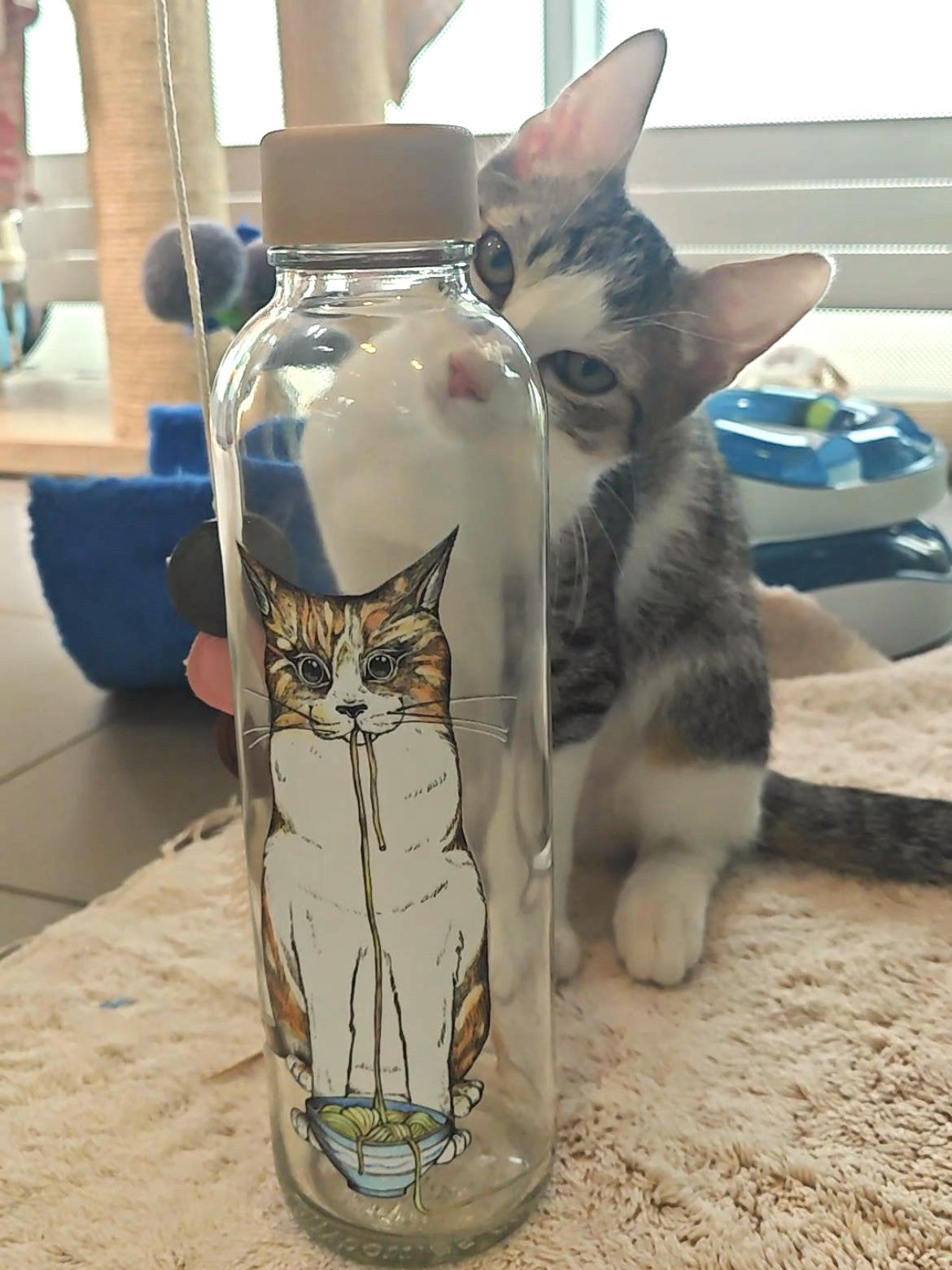 Die RAMEN CAT auf unserer CARRY Bottle 0,7l schlürft entspannt ihre Nudeln. Damit starten wir motiviert in den Tag und werden regelmäßig daran erinnert ausreichend zu trinken und zu essen. Guten Appetit! Zusätzlich spenden wir 1€ pro verkaufter Trinkflasche RAMEN CAT an das Tierheim Berlin, um unseren tierischen Freund:innen der Stadt zu helfen.
