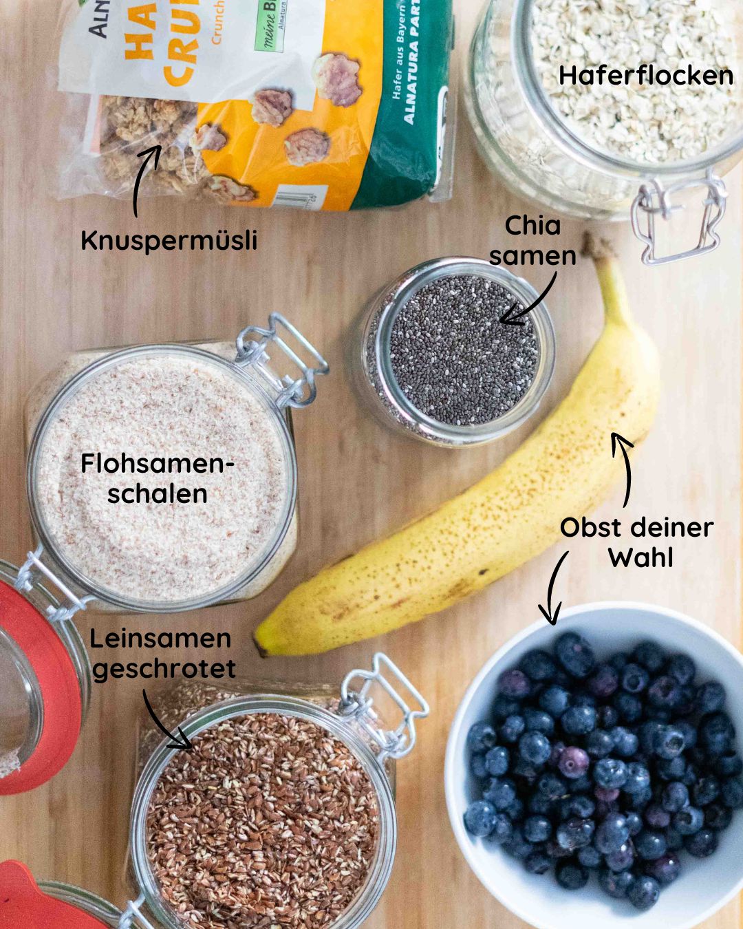 Dazu gehören Obst und Vollkornprodukte, denn sie enthalten reichlich Ballaststoffe. Am besten schaust du in den Saisonkalender, welches Obst gerade verfügbar ist :)