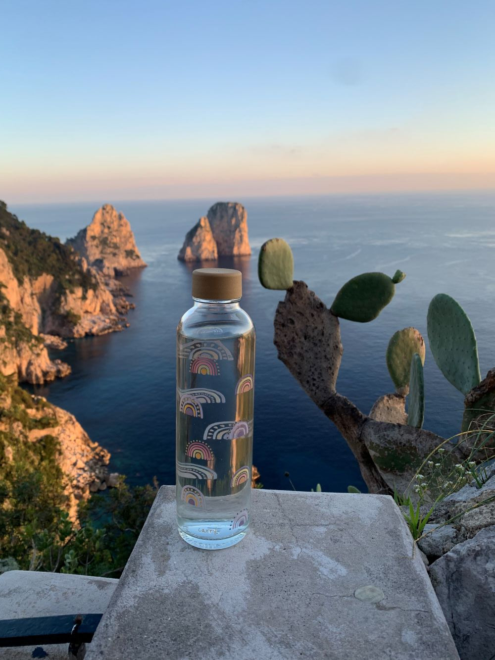C'est avec la sensation d'un chaud soleil sur le visage que nous buvons dans notre gourde BOHO RAINBOW. Le compagnon parfait pour les excursions dans la nature en plein essor, qui te rappelle de boire suffisamment d'eau.