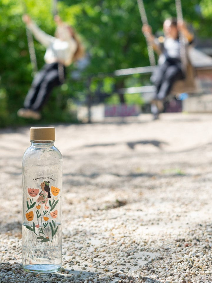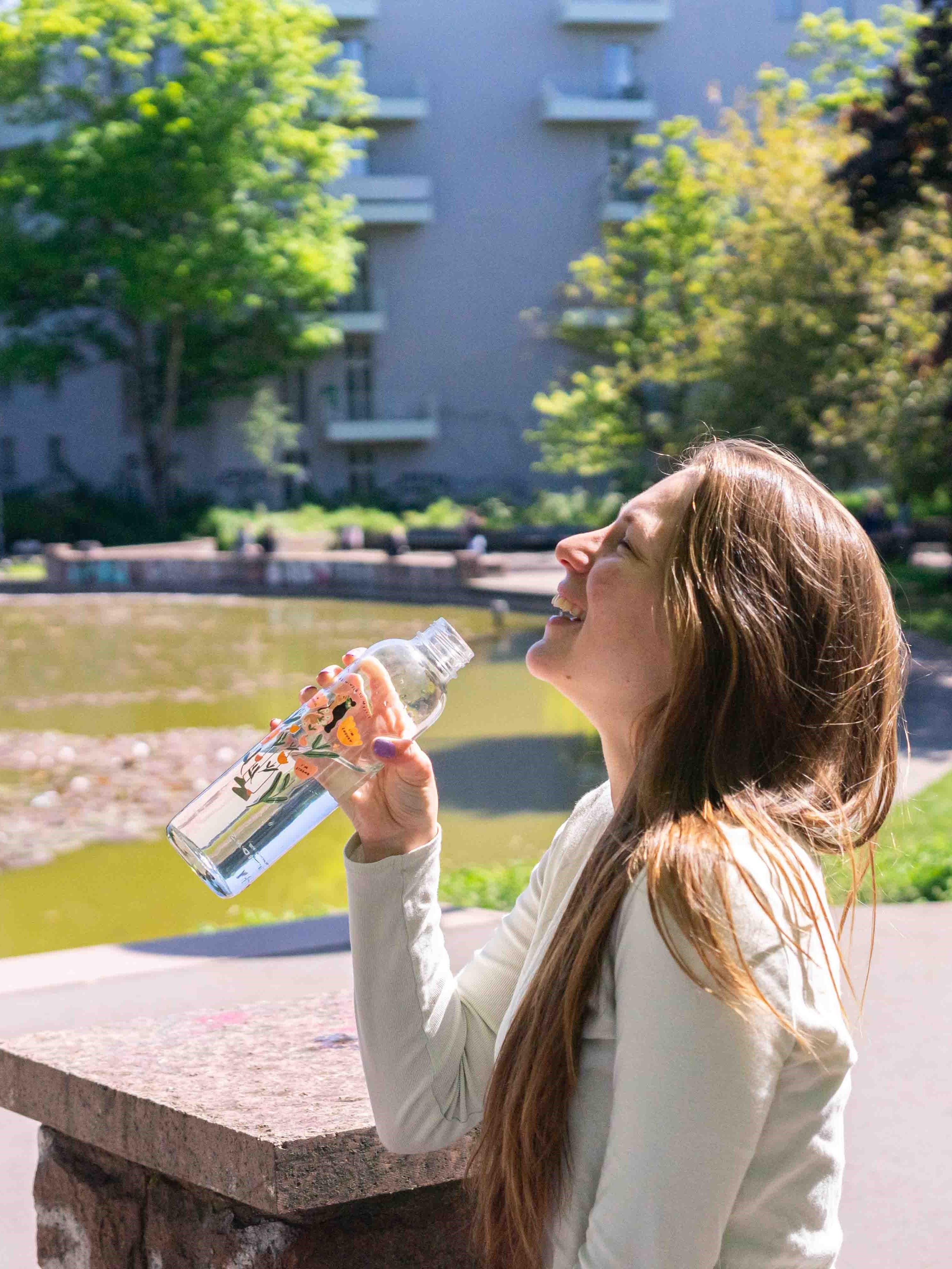 Le verre recyclé est le matériel de notre choix. Il est sans danger pour la santé, recyclable et facilement à nettoyer. Pour assurer que tu profites d’une longue vie de ta gourde, nous avons opté pour un verre particulièrement résistant. Notre gourde offre une résistance à la casse en cas de chocs mineurs. Néanmoins, le verre est cassable, c’est pourquoi tu dois éviter une chute de notre gourde de grande hauteur.