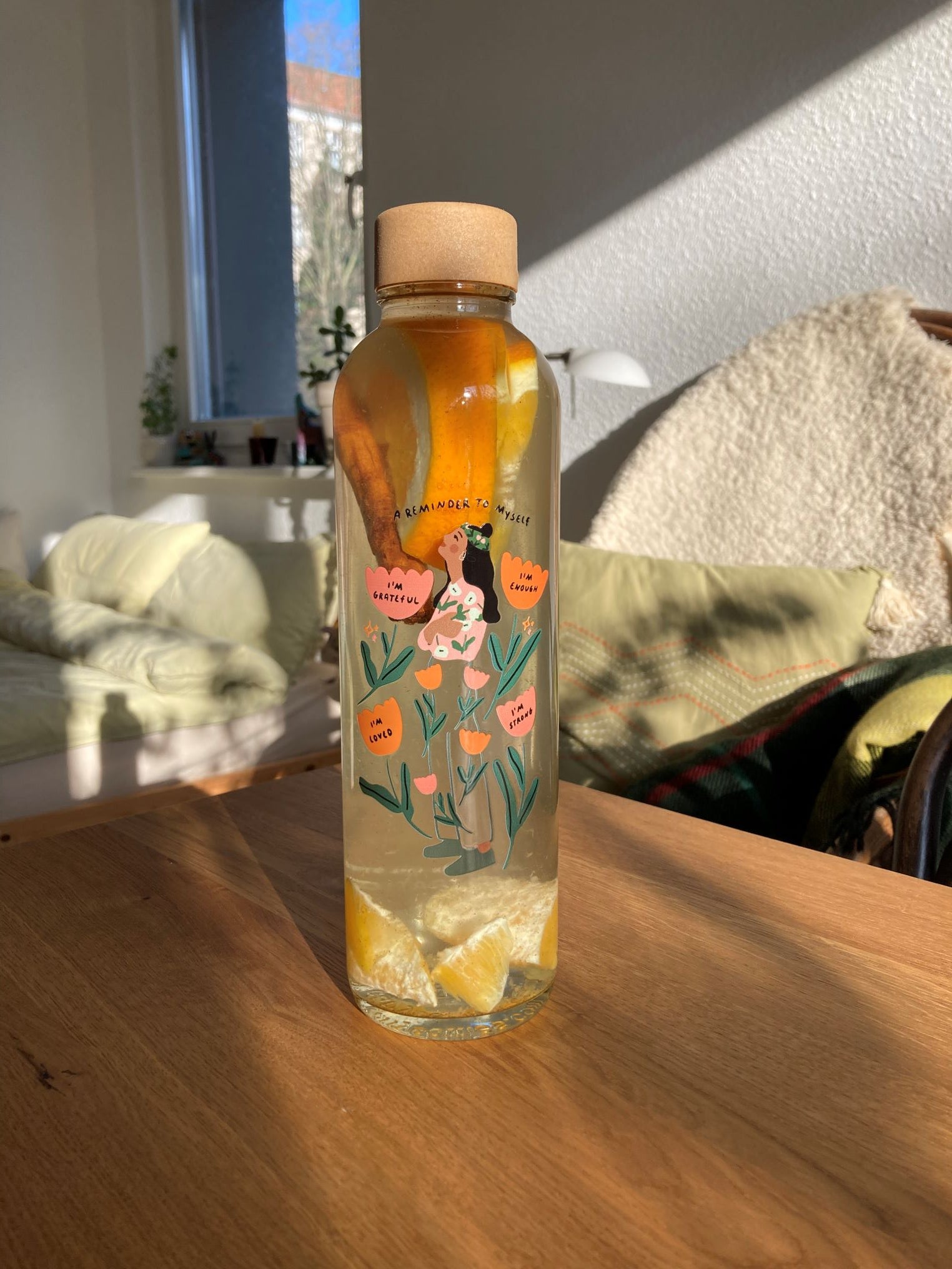 On utilise des encres UV pour l’impression de notre gourde, parce qu’elles sont tellement jolies et surtout sans métaux lourds. Ce n’est pas seulement bon pour ta santé, mais aussi écologique. Notre gourde impressionnée est est aussi lavable au lave-vaisselle. Alternativement tu peux la laver à la main. Facilement à rincer avec de l’eau très chaud et une petite goutte de liquide vaisselle, à essuyer et à réutiliser.