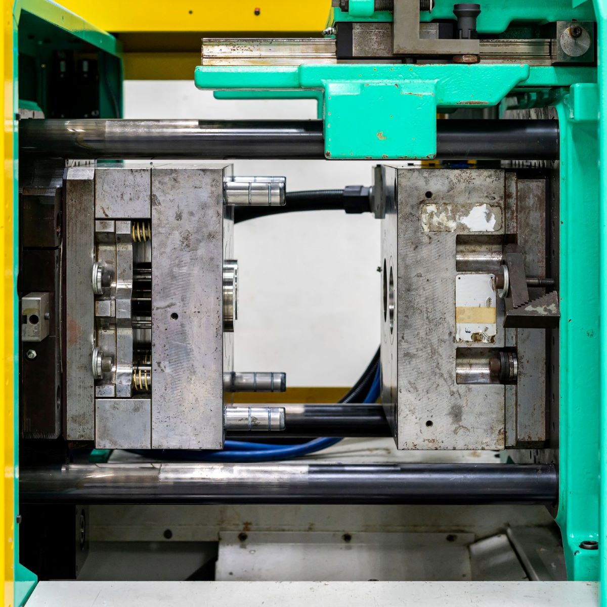 Bei unserem Partner, einem mittelständischen Familienunternehmen in Hessen, wird das Granulat geschmolzen und im Spritzguss-Verfahren zu unseren Schraubverschlüssen verarbeitet. Dafür wird das flüssige Material in unsere Deckelform gespritzt, so entsteht die kleine Einspritzstelle oben mittig auf dem Deckel.