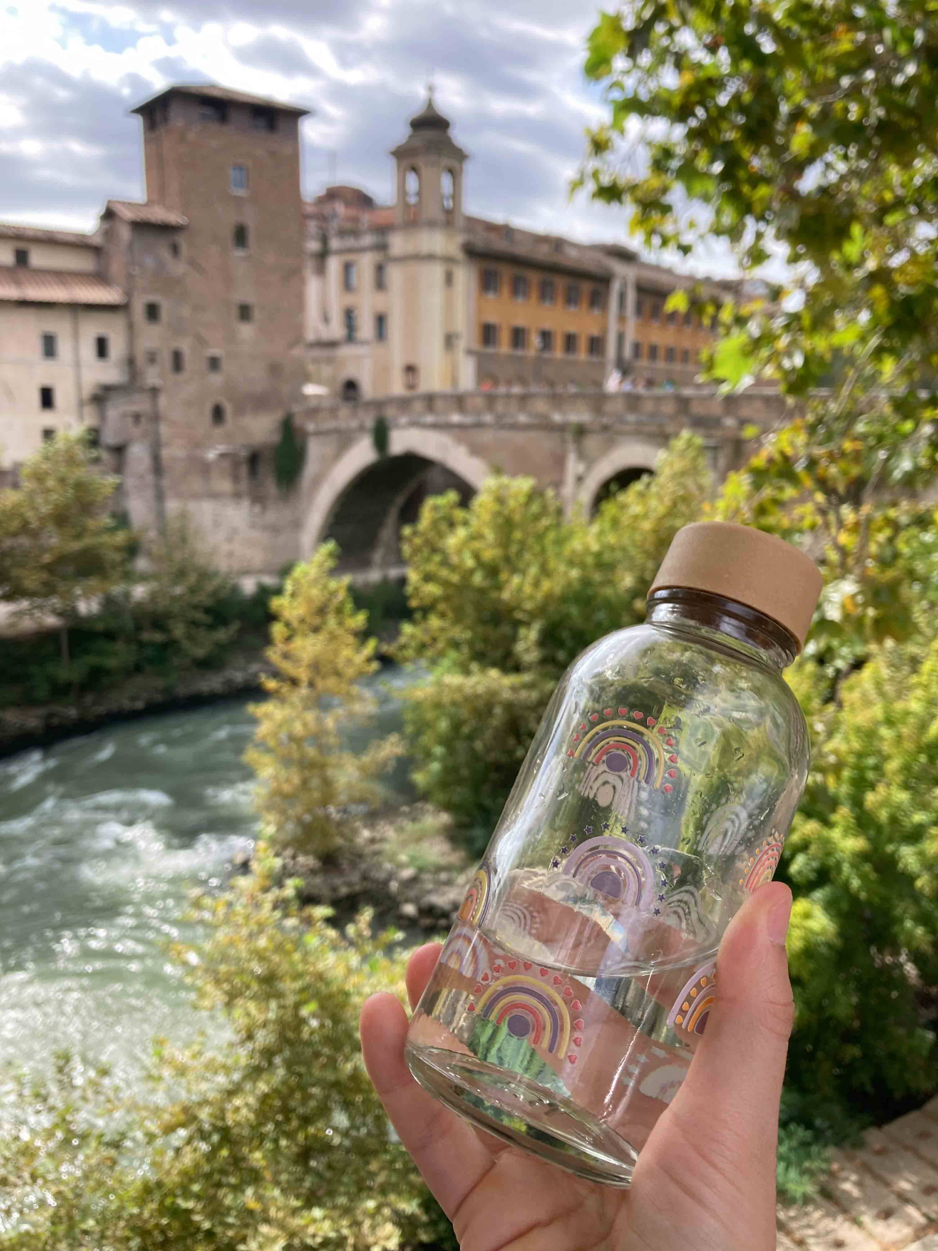 Mit dem Gefühl von warmem Sonnenschein im Gesicht trinken wir aus unserer Trinkflasche BOHO RAINBOW. Die süße Begleiterin für unterwegs - passt in jede Tasche.