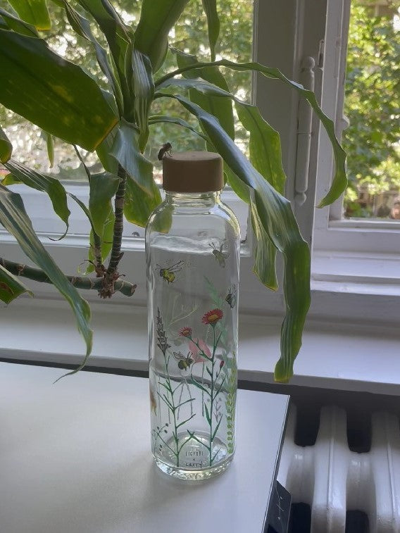 Wir geben den Wildblumen und Wildbienen einen Platz auf unserer Flasche und mit jedem Verkauf schenken wir ihnen mehr Lebensraum in unserer Natur. Gemeinsam mit der Künstlerin Hanna Ligeti stehen wir für nachhaltige und regional produzierte Produkte, recycelte Materialien und die Liebe zur Umwelt.